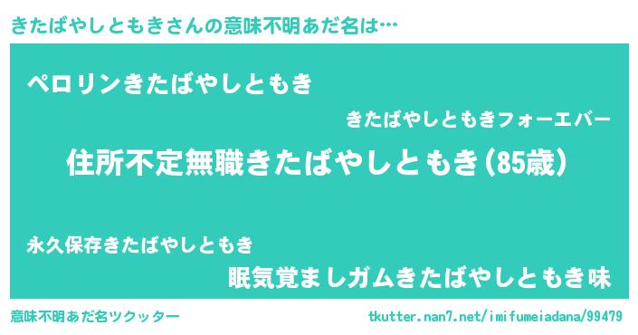 | 男性向けラノベタイトル風あだ名 | 『この素晴らしい世界にきたばやしともきを!』 |