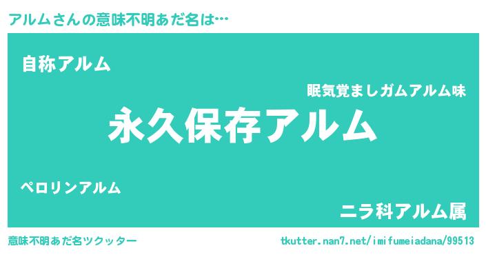 | 男性向けラノベタイトル風あだ名 | 『アルムという概念が存在しない退屈な世界 』 |