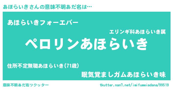 | 胡散臭い通販商品みたいなあだ名 | 『必ず成功する霊験あらたかなお札…その名も「あほらいき」』 |