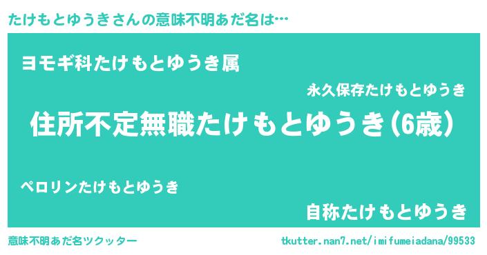 | 料理風あだ名 | 『たけもとゆうきのカルパッチョ風』 |