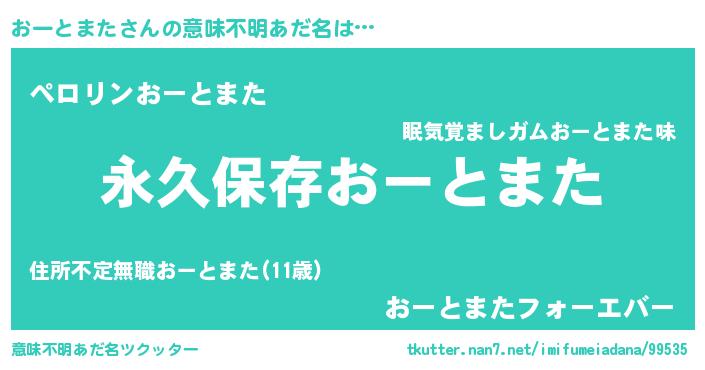 | 男性向けラノベタイトル風あだ名 | 『おーとまたという概念が存在しない退屈な世界 』 |
