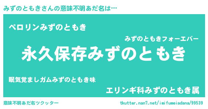 | 男性向けラノベタイトル風あだ名 | 『みずのともきという概念が存在しない退屈な世界 』 |
