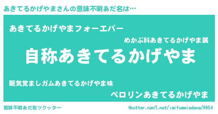 | 欧米人風あだ名 | 『アンジェラ・あきてるかげやま』 |