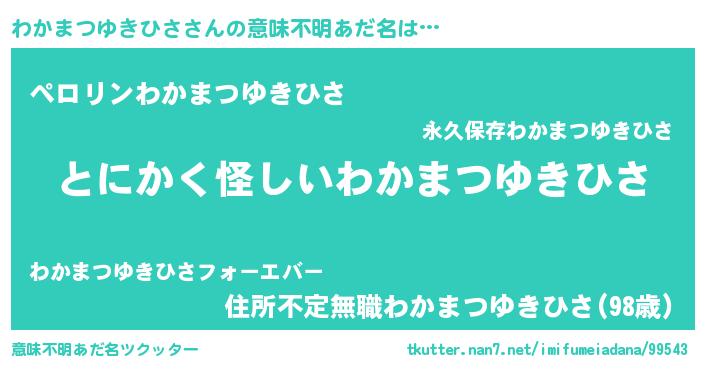 | 男性向けラノベタイトル風あだ名 | 『わかまつゆきひさの嫁は女の子じゃないと思った?』 |
