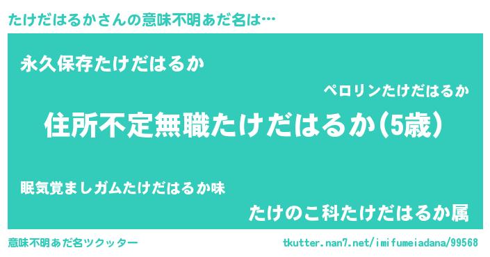 | 伝説のあだ名 | 『古より伝わる吟遊詩人たけだはるか』 |