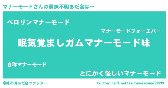 | ヒーロー風カッコイイあだ名 | 『友情の使者マナーモード』 |
