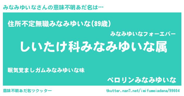 | 男性向けラノベタイトル風あだ名 | 『ミナミユイナスレイヤー』 |