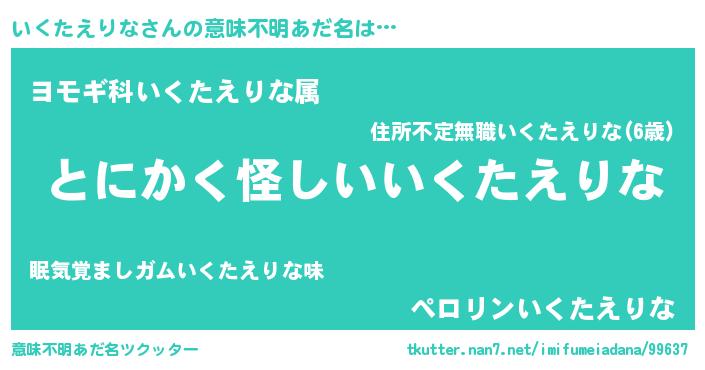 | ポケモン風あだ名 | 『イクゴンZ』『ヒイクタエリナ』 |