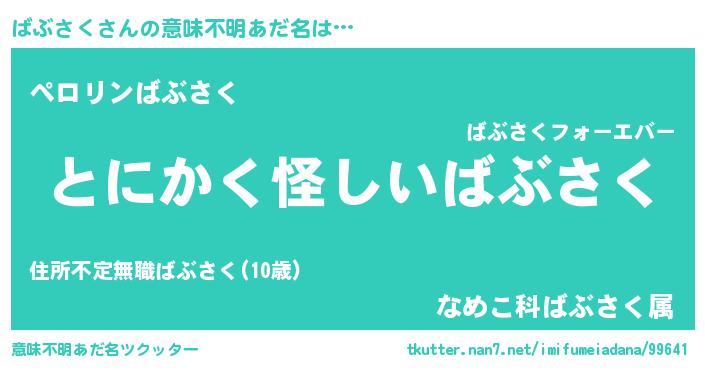 | 男性向けラノベタイトル風あだ名 | 『ばぶさくに滅ぼされるだけの簡単なお仕事です』 |