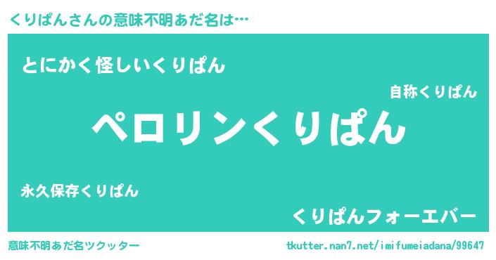 | 男性向けラノベタイトル風あだ名 | 『くりぱんの憂鬱』 |