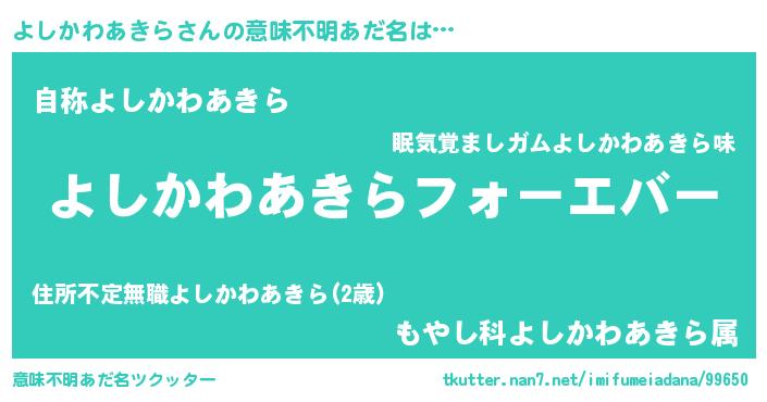 | ファンタジー風あだ名 | 『エターナルヨシカワアキラー』 |