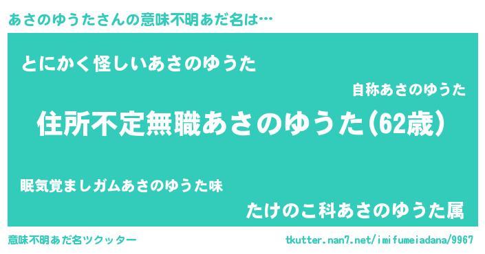 | ヒーロー風カッコイイあだ名 | 『仮面アサダー』『銀牙騎士アサ』 |