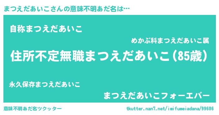 | 女子向けラノベタイトル風あだ名 | 『悪役まつえだあいこに転生したようですが、知った事ではありません』 |
