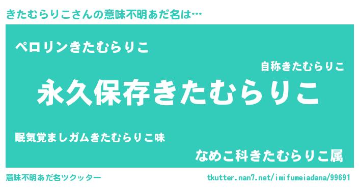 | 男性向けラノベタイトル風あだ名 | 『きたむらりこという概念が存在しない退屈な世界 』 |