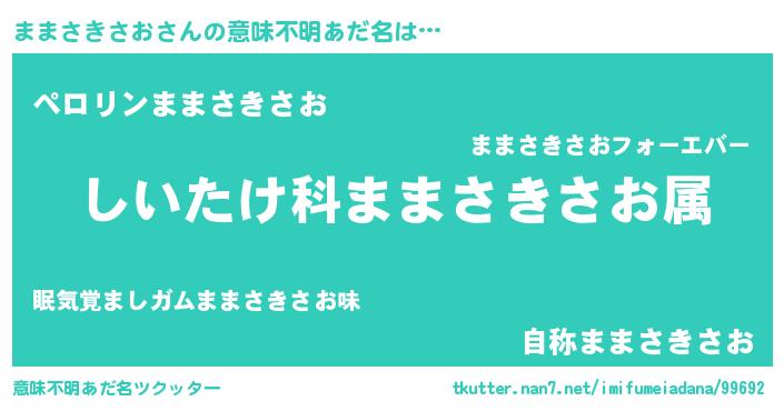| 胡散臭い通販商品みたいなあだ名 | 『必ず成功するブレスレット…その名も「ままさきさお」』 |