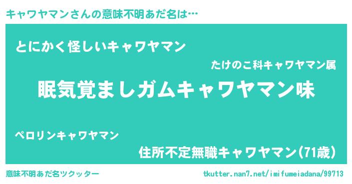 | 男性向けラノベタイトル風あだ名 | 『おまえをオタクにしてやるから、俺をキャワヤマンにしてくれ! 』 |