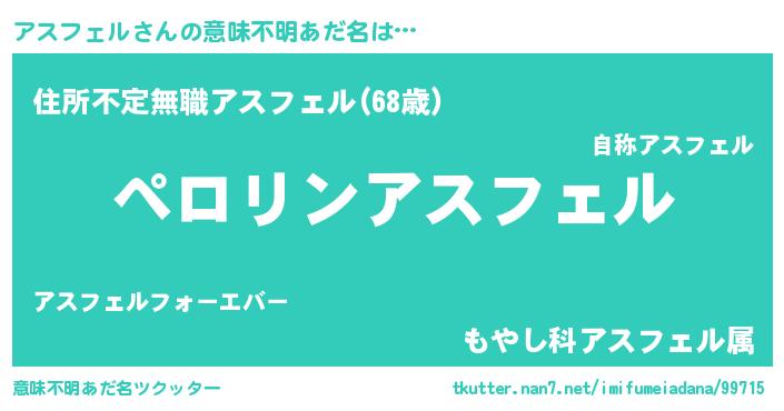 | 男性向けラノベタイトル風あだ名 | 『アスフェルの憂鬱』 |