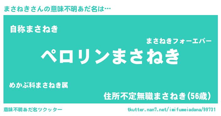 | 欧米人風あだ名 | 『アンジェラ・まさねき』 |
