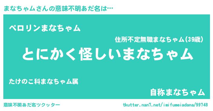 | 女子向けラノベタイトル風あだ名 | 『まなちゃムは平凡を望む』 |