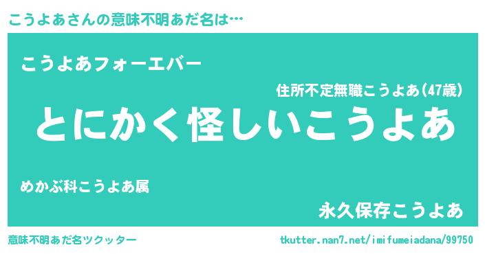 | 女子向けラノベタイトル風あだ名 | 『こうよあの卵を拾いまして』 |