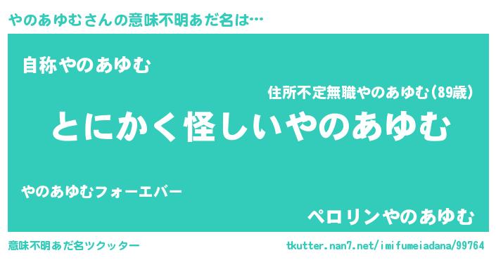 | 伝説のあだ名 | 『解き放たれた魔法使いやのあゆむ』 |