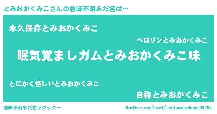 | 男性向けラノベタイトル風あだ名 | 『おまえをオタクにしてやるから、俺をとみおかくみこにしてくれ! 』 |