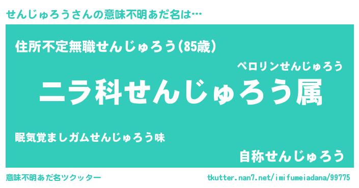 | 欧米人風あだ名 | 『せんじゅろう・ステッグマイヤー』 |