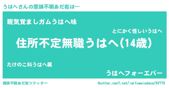 | ヘコむあだ名 | 『豆乳』『うはっちょ』『うはへ(笑)』 |
