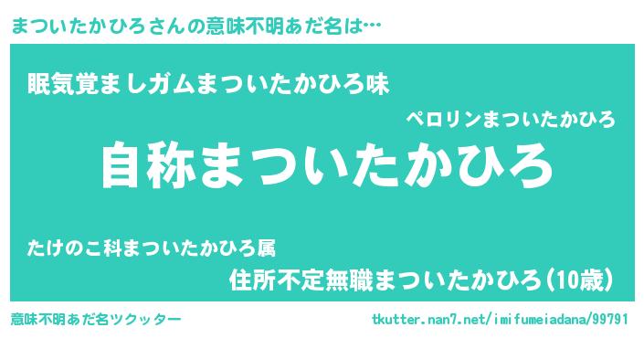 | 肩書あだ名 | 『まついたかひろ閣下』 |