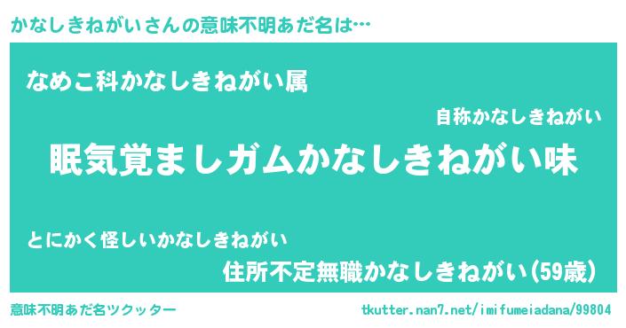 | ヘコむあだ名 | 『かなお』『かなしきねがい(笑)』 |