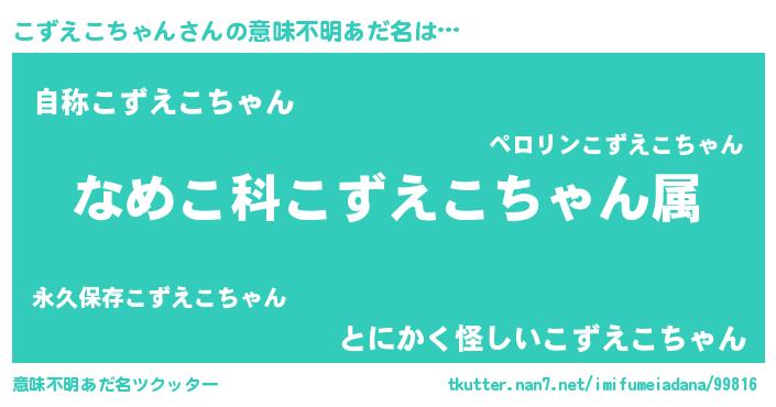 | 胡散臭い通販商品みたいなあだ名 | 『テレビで話題の高麗人参…その名も「こずえこちゃん」』 |