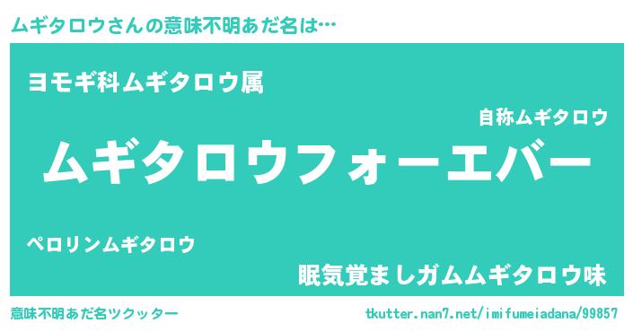 | 欧米人風あだ名 | 『ムギタロウクリステル』 |