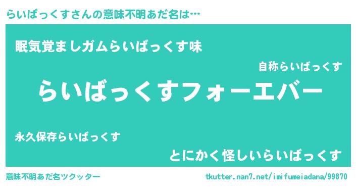 | ファンタジー風あだ名 | 『エターナルライバックスー』 |