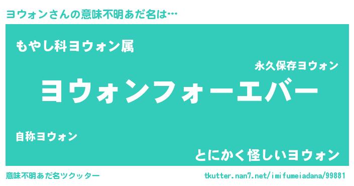 | ファンタジー風あだ名 | 『エターナルヨウォンー』『ゼヨウトゥ』 |