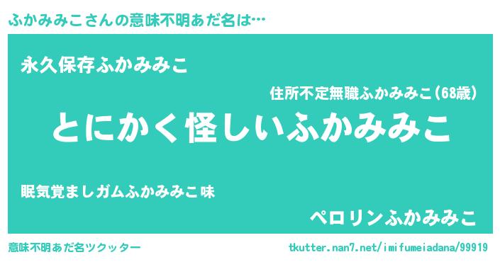 | ヘコむあだ名 | 『ふかお』『ふかみみこ(爆)』 |