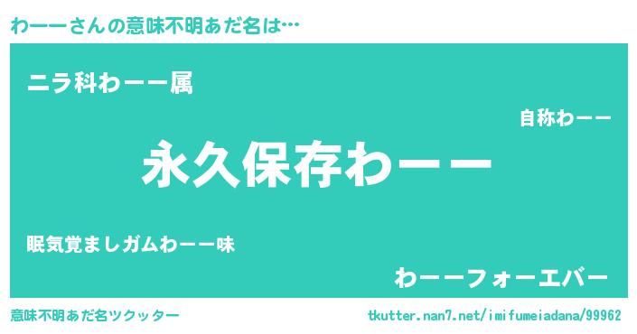 | 胡散臭い通販商品みたいなあだ名 | 『絶対に幸福をもたらす健康食品…その名も「わーー」』 |