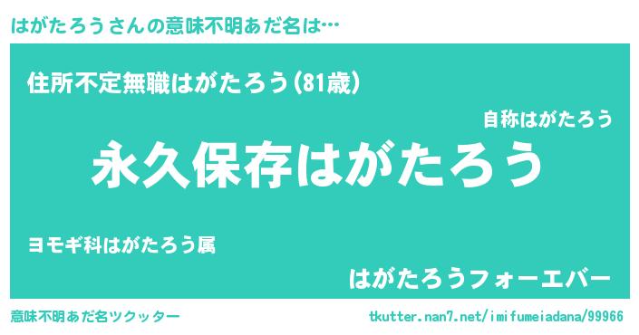 | 胡散臭い通販商品みたいなあだ名 | 『前代未聞の健康食品…その名も「はがたろう」』 |