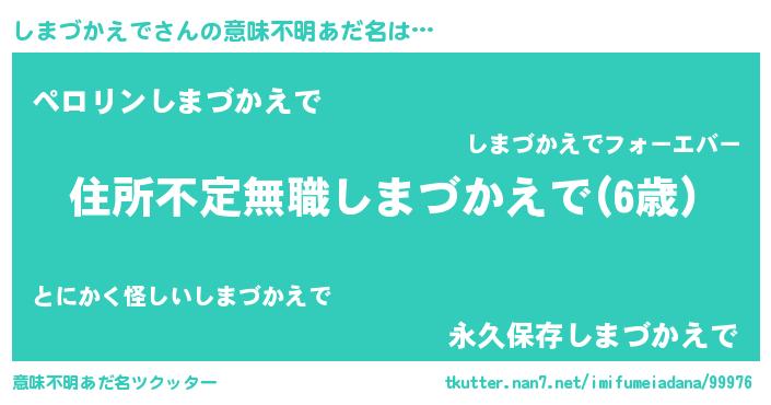 | 胡散臭い通販商品みたいなあだ名 | 『あなたにだけ特別に提供する100年もののヴィンテージワイン…その名も「しまづかえで」』 |