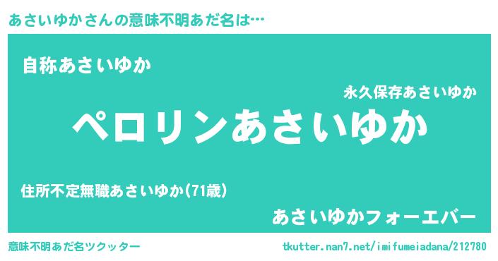 | 欧米人風あだ名 | 『アンジェラ・あさいゆか』 |