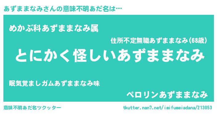 | 欧米人風あだ名 | 『アンジェラ・あずままなみ』 |