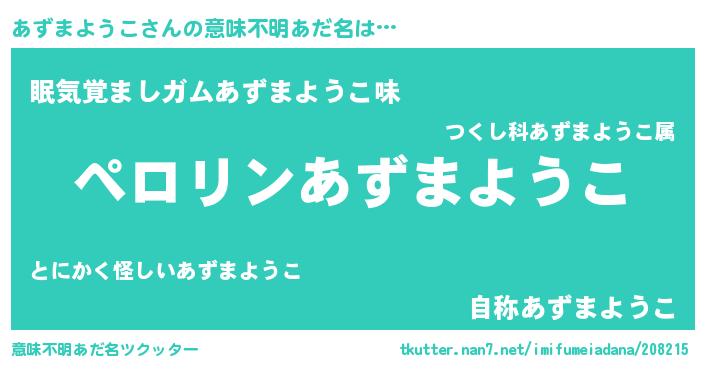 | 男性向けラノベタイトル風あだ名 | 『アズマヨウコアートオンライン』 |