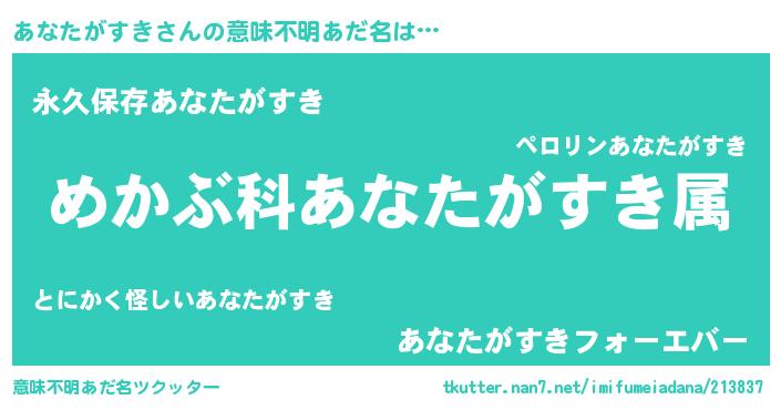 | 胡散臭い通販商品みたいなあだ名 | 『絶対に幸福をもたらす水素水…その名も「あなたがすき」』 |