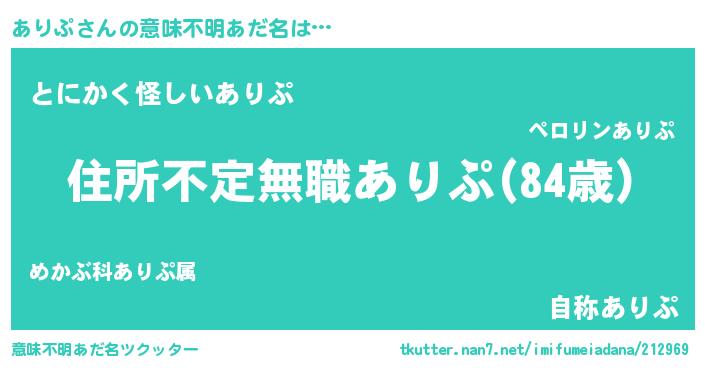 | 胡散臭い通販商品みたいなあだ名 | 『あなたにだけ特別に提供する世界で10本だけ現存している希少なブランデー…その名も「ありぷ」』 |