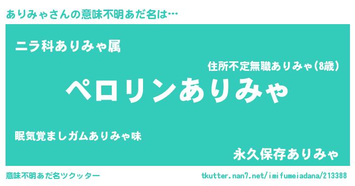 | ヘコむあだ名 | 『ありふぇ~』『ありみゃ(小並感)』 |