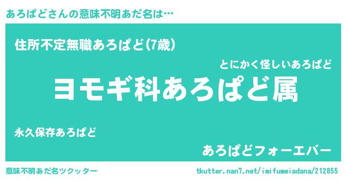 | 胡散臭い通販商品みたいなあだ名 | 『あなたにだけ特別に提供する100年もののヴィンテージワイン…その名も「あろぱど」』 |