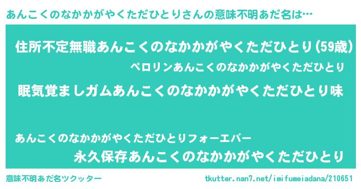 | ヘコむあだ名 | 『あんこくのなかかがやくただひとり(震え声)』 |