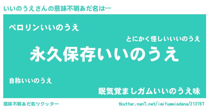 | 男性向けラノベタイトル風あだ名 | 『いいのうえという概念が存在しない退屈な世界 』 |