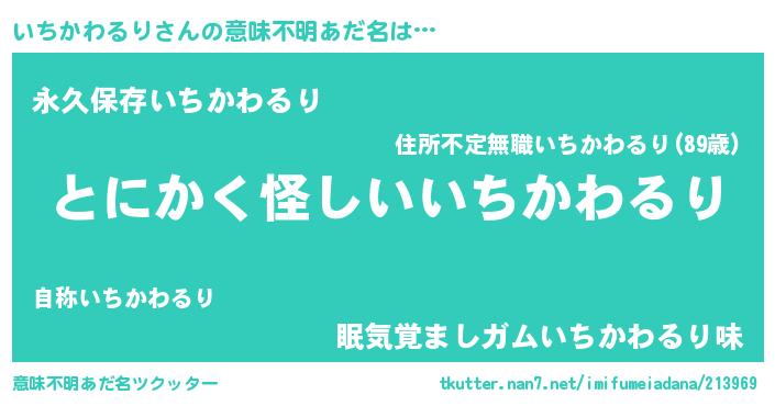 | ヘコむあだ名 | 『いちぷりん』『いちかわるり(小並感)』 |