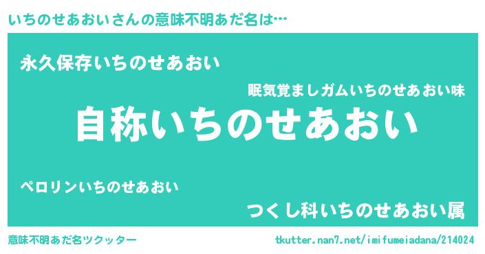 | 可愛いあだ名 | 『いちうちぇる』『いちのせあおいママ』 |