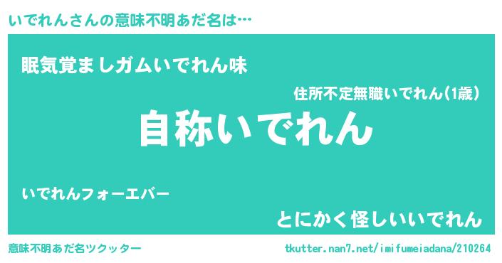 | 男性向けラノベタイトル風あだ名 | 『Re:いでれんから始める異世界生活』 |